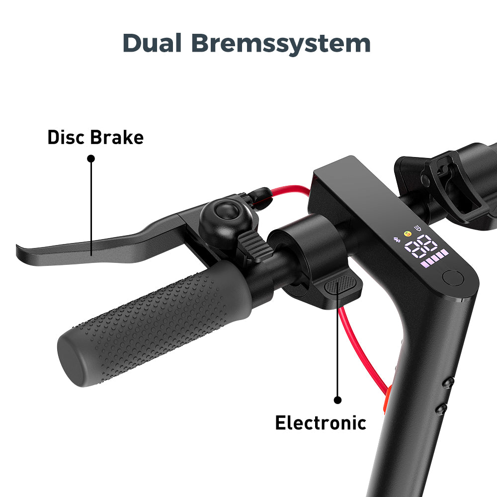 Der Elektroroller verfügt über Scheibenbremsen und EABS regeneratives Antiblockiersystem für Bremsen.