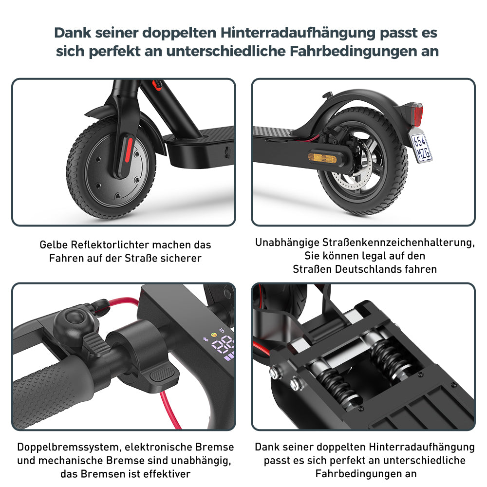 3. Der Elektroroller mit Elektroantrieb verfügt über die erforderliche Straßenzulassung und ist daher LEGAL und sicher auf deutschen Straßen. Dieser Artikel wird mit einer Allgemeinen Betriebserlaubnis (ABE) geliefert. Bitte versichern Sie den Artikel (die Seriennummer befindet sich an der Seite des Fahrzeugs).