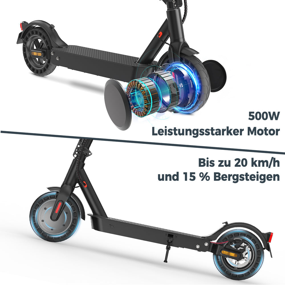 Dabei erreichen Sie dank kraftvollem 500 Watt-Motor strebt danach, neue Höchstleistungen bei Elektrorollern zu erreichen.
