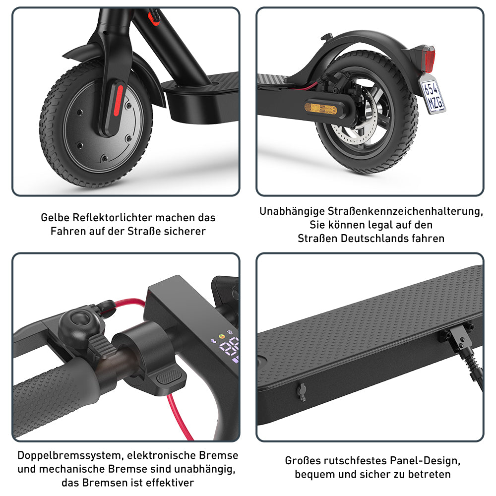 3. Der Elektroroller mit Elektroantrieb verfügt über die erforderliche Straßenzulassung und ist daher LEGAL und sicher auf deutschen Straßen. Dieser Artikel wird mit einer Allgemeinen Betriebserlaubnis (ABE) geliefert. Bitte versichern Sie den Artikel (die Seriennummer befindet sich an der Seite des Fahrzeugs).