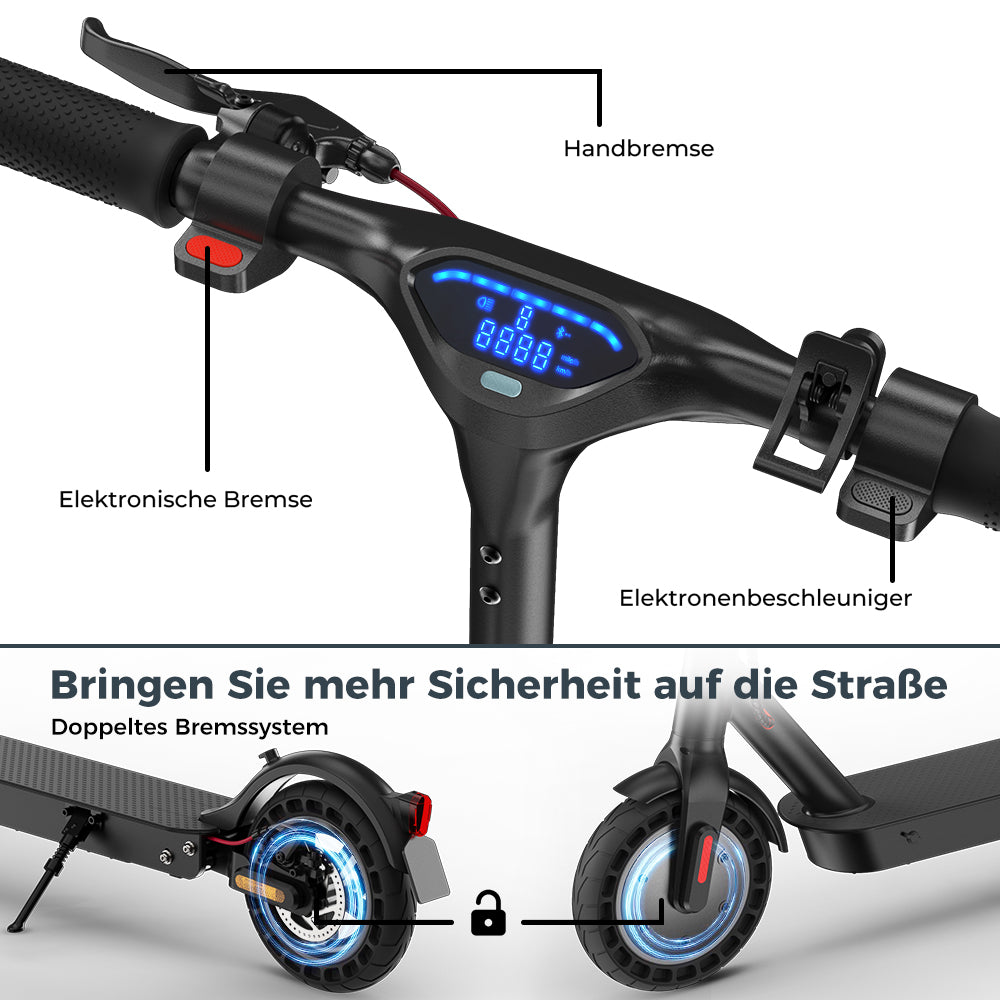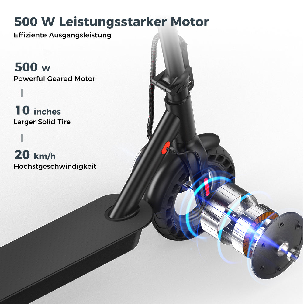 Dabei erreichen Sie dank kraftvollem 500 Watt-Motor strebt danach, neue Höchstleistungen bei Elektrorollern zu erreichen.
